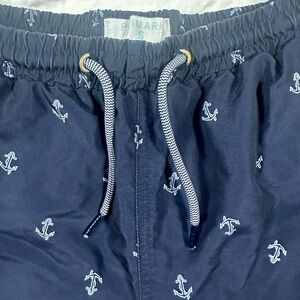 Primark Navy Blue Anchor Print Swim Trunks w/ Lining & Drawstrings Men’s S