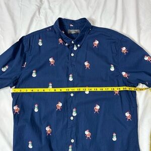 Primark Navy Blue Christmas Button Down Shirt Size Large 100%Cotton Pre-owned condition Measurements are pictured 🛍🛍🛍Bundle and save 💰💰Reasonable offers are welcome 🚚Ships next business day! No shipping on weekends A040