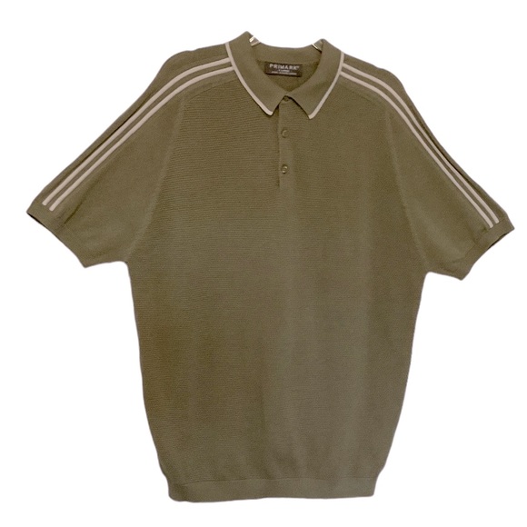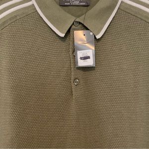 Primark Knit Polo Shirt. Textured Knit. Short Sleeves. Collar with Front Button Panel. Striped Shoulder & Collar Details. Retro Style. New with Tags.