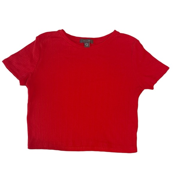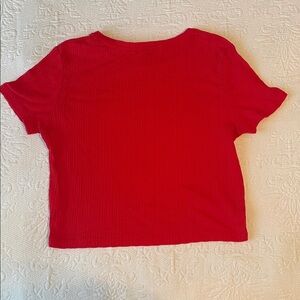 Primark Red Textured Crop Short Sleeve Layering Shirt Top Size Small EUC Measurements in pictures