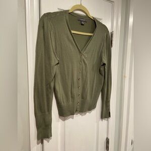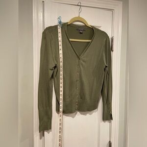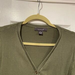 Primark Size M Sage Green Long Sleeve Gold Button V Neck Lightweight Cardigan