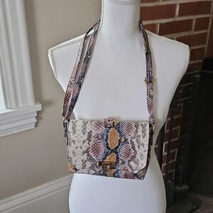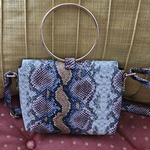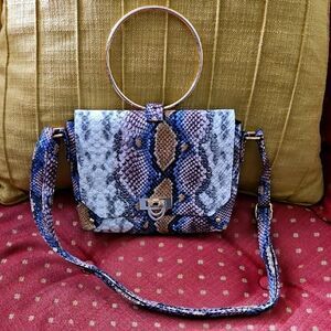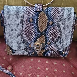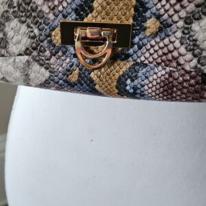 Primark's classic vegan handbag features faux snakeskin design with adjustable shoulder strap,and gold hardware. This is in great previously owned condition.