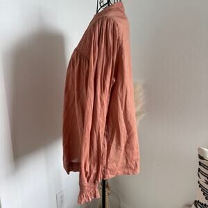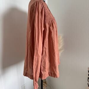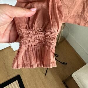 Primark Terra Cotta Cotton Lightweight Boho Peasant Smocked Long Sleeve Blouse-S