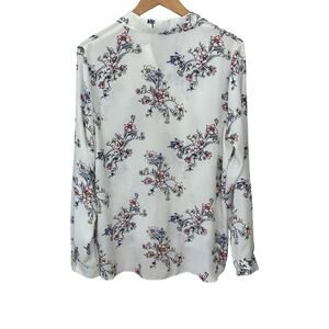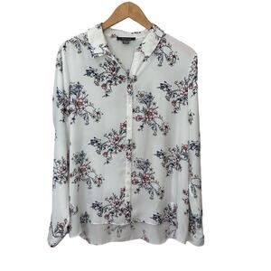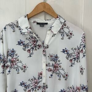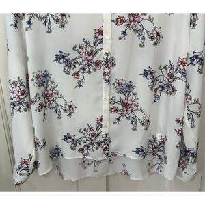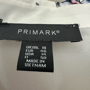 Primark UK Brand Blouse Womens Top Size US 14 Floral Button Up Cuff Sleeve White
