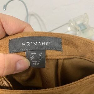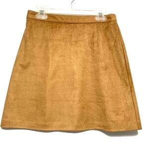 Primark Vegan Tan Brown Suede Leather Mini Skirt Exposed Silver Zipper size 2