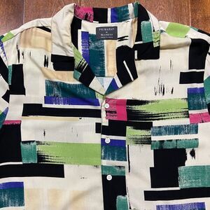 Primark Viscose Multicolored Cream Casual Button Front Shirt Men's Size Medium