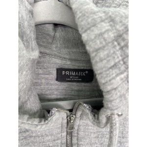 Primark Women's Full Zip Jacket Gray Hooded Elbow Pads Long Sleeve Size Medium 84% Cotton 34% Polyester