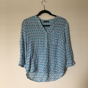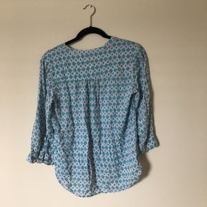 white, teal and pink patterned blouse all buttons are securely attached no flaws this top is a UK 12, equivalent to US 10