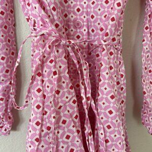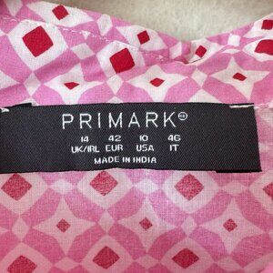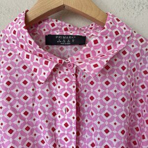Primark pink print shirt dress size US 10 Red Geometric Collared