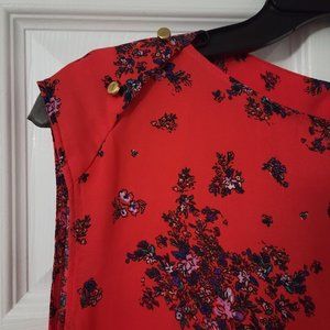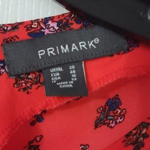 Red poly sleeveless blouse by Primark. Floral print and cute buttons on shoulders. Size 16 Length 27.5"