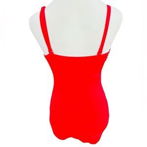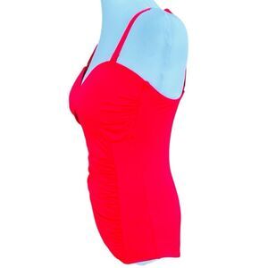 Primark Red One Piece swimsuit, shirred sides, crossover bodice size 8.