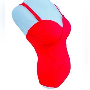 Primark Bold Red Swimsuit, shirred sides, crossover bodice size 8.
