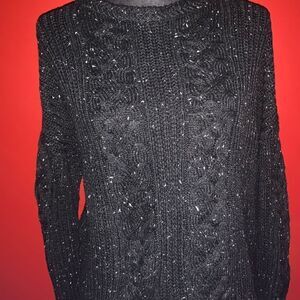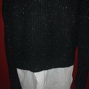Primark Twofer Ribbed Knit Sweater Blouse. Black Marled ribbed knit crewneck twofer top. Long sleeve sweater with white attached button down shirt on bottom. 100% acrylic. Size: 10. Preowned in good condition.