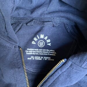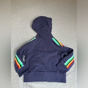 Primary Brand hoodie for babies in Size 6-12 months. This a great wardrobe staple, with adorable rainbow detail and a zip-up for ease of taking on and off. Navy blue, in great shape with just a bit of fade on the navy.