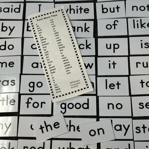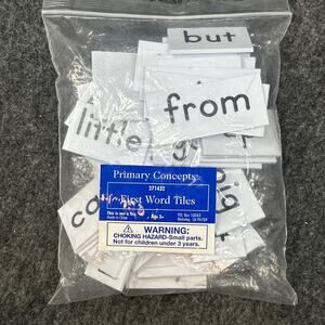 Set of 52 hard plastic sight word tiles by Primary Concepts, ideal for teaching phonics, sentence building, and early reading skills in classroom or homeschool settings.