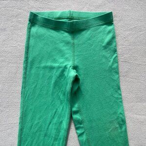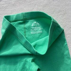 Primary organic long-sleeve PJ top and pants. "Clover" in color. Size 6-7. GUC to VGUC for slight wear and discoloration on left knee of pants and tiny dot on upper back of shirt. See pictures. No holes. Washed inside-out on gentle and hung to dry. Non-smoking, dog-friendly, low-scent home.