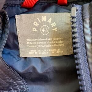 Play condition for a large stain on sleeve. It looks like mud but I recently washed it (unscented, delicate) and it did not come out. Untreated. Some pilling on cuffs and hood seam typical to these puffers.