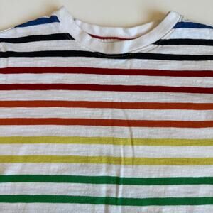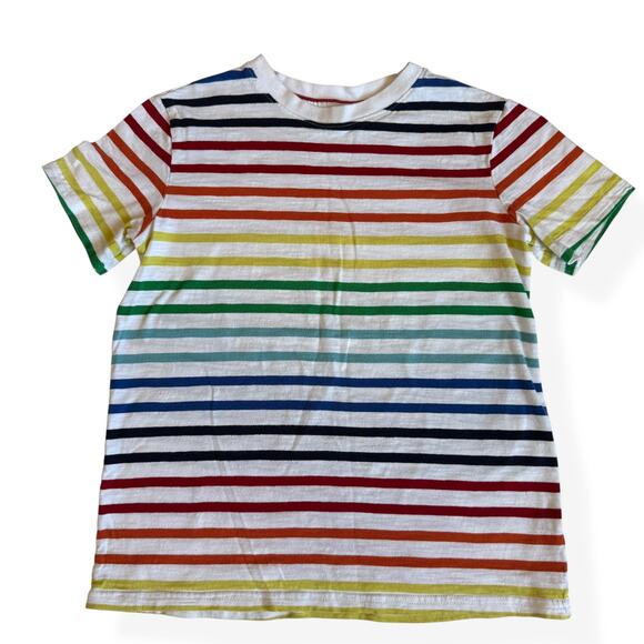 Size 12, Primary, rainbow stripe short sleeve t-shirt. 100% cotton. No stains or flaws, light wear. Very good used condition.