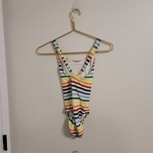 Primary Rainbow Stripe Swimsuit Sz 6-7. Excellent, pre-owned condition.