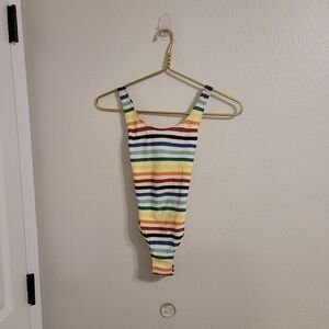 Primary Rainbow Stripe Swimsuit Sz 6-7