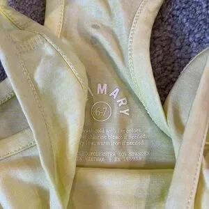 Two cute fluorescent tanks in breathable material. Small dot noted on yellow one, see last pic.