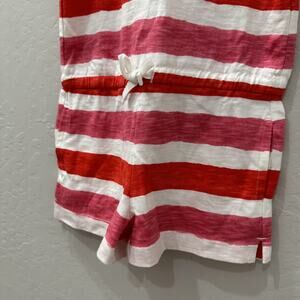 Primary tank romper size 2. Pink, white, & red stripes with tie at waist. Super cute and perfect for summer! Excellent condition.