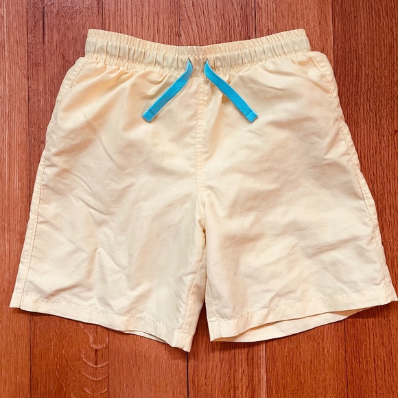 Primary brand yellow swim trunks with blue contrast drawstring. Kids size 10. From smoke-free home.