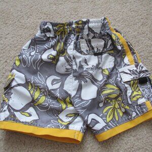Primativ Surf Co Swim Trunks Toddler Boys Size 24M Yellow Gray Elastic Bottoms