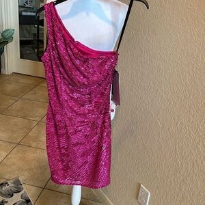 Primavera Couture Women's 0 One Shoulder Pink Sequin Mini Dress Barbiecore New