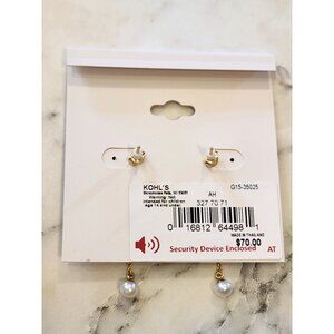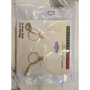 Primavera Italy 24K Gold Over Sterling Dangle Earrings Chain & Faux Pearl Drop