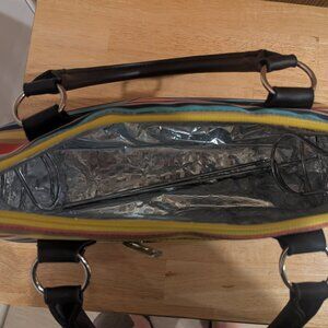Primeware Insulated Striped Wine Tote. Protect your bottle of wine and keep it cool while traveling to your next party. Bag includes stainless steel corkscrew.