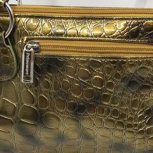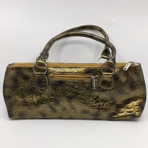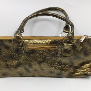 Metallic croc embossed vegan polyurethane leather insulated wine clutch tote bag!