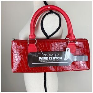 We offer you our luxury thermal lined insulted red crocodile single bottle wine clutch. Thermal insulated compartment to keep your favorite bottle of wine chilled and outer zippered compartment for accessories. Lightweight, trendy and a wonderful gift idea for the wine connoisseur! Can double as a lunch bag too! Luxury Faux Crocodile Red. Measures 13"L x 4.5"W x 6.5"H Thermal insulation to keep your lunch cool