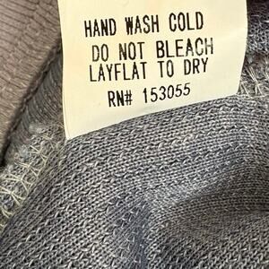 This is in good preowned condition. It does have some wash wear on the bands around sleeves and hem.