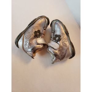 Primigi brand baby shoes, Size 3.5 US 19EU. Made in Italy. See size chart to confirm that 19 EU size corresponds to the 3.5 US. Silver booties with grasp strap. Genuine Leather. Well known european kids brand made in Italy. Inner sole is made with Sky Effect System comfort for your baby's tender feet. Preowned in good condition. Shoes will be carefully packaged for safe shipping/handling. Reasonable offer will be considered.