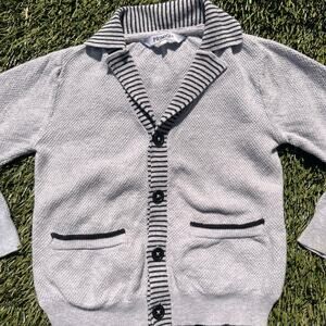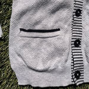 Primigi Boy's Waffle Knit Contrast Trim Notch Label Collar Cardigan Sweater 24m