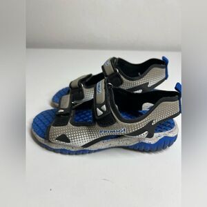 Primigi Italian Children's Sandals Size 11 Blue Grey Summer Shoes Hook Loop No size label, all measurements in pictures approximately size 11