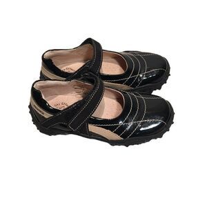 The brand is primigi, the color is black and beige,patent leather, adjustable closure straps, Check out my closet to save money on shipping, if you have any questions or you need measurements, please feel free to ask