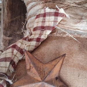 Chicken handmade and stuffed, stained with dusting of cinnamon. Star, bells safety pin and corn husk added. Approx. 9 x 12. Each will be slightly different because of them being handmade. The first listing will be the one sent.