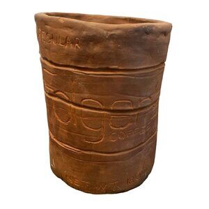 Primitive Clay Pot Pottery Folgers Can Coffee Handmade Signed 5.25" x 4" Origina