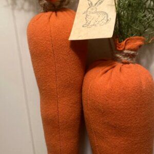 2 large hanging carrots with green, nice and plump about 16 inches long without greens