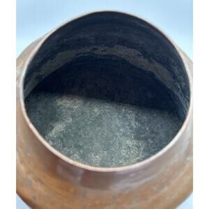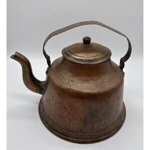 Primitive Farmhouse Copper Tea Kettle With Brass Spout 7.5” tall including handle. Kettle has patina and denting as shown in photos.