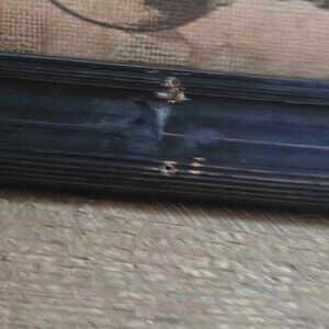 Rustic distressed framed spoon wall hanging. There are six small holes at the bottom part of the frame. It measures 9" high and 14.5" wide.