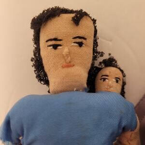 Primitive Handmade Vintage Cloth Handsewn Lot Of 2 Dolls 2 Pair Shoes 7 Inches