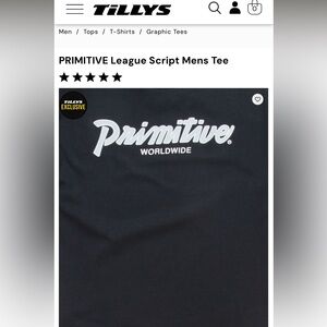 Classic black tee with Primitive logo. Soft fabric. Ideal for casual wear.