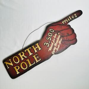 Primitive Rustic Farmhouse Christmas North Pole Directional Wooden Sign
