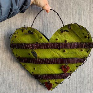 Colorful Handmade HEART Wall art / sculpture is ~13W x 13H. Hand crafted.