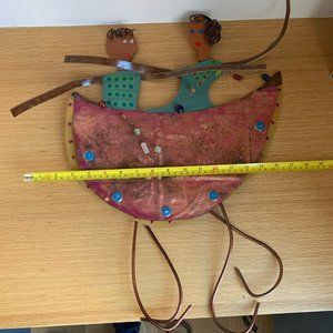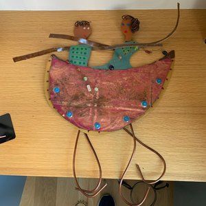 Primitive Rustic style, Two people in a half moon. Wall art is ~19W x 19H.