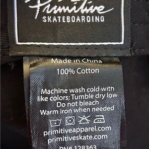 Black cap by Primitive featuring an embroidered red rose and letter P. The hat is adjustable. Made of 100 % Cotton. Compare to Tilly’s price. Very nice hat.