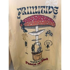 Primitive Skateboarding M Crewneck mushroom skeleton Elevator Washed tan peace..